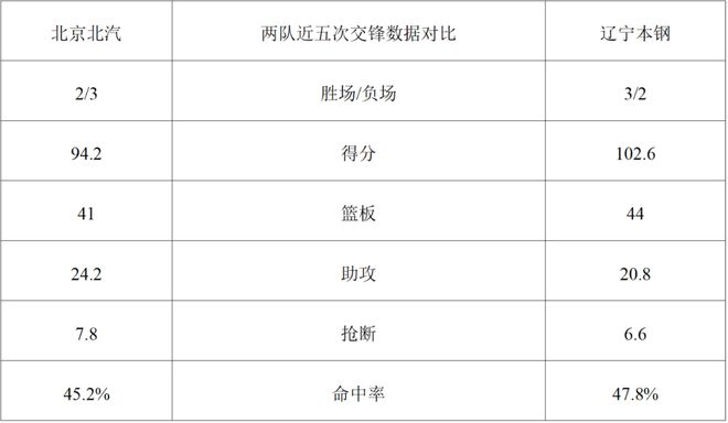 两队近五次交锋数据对比: